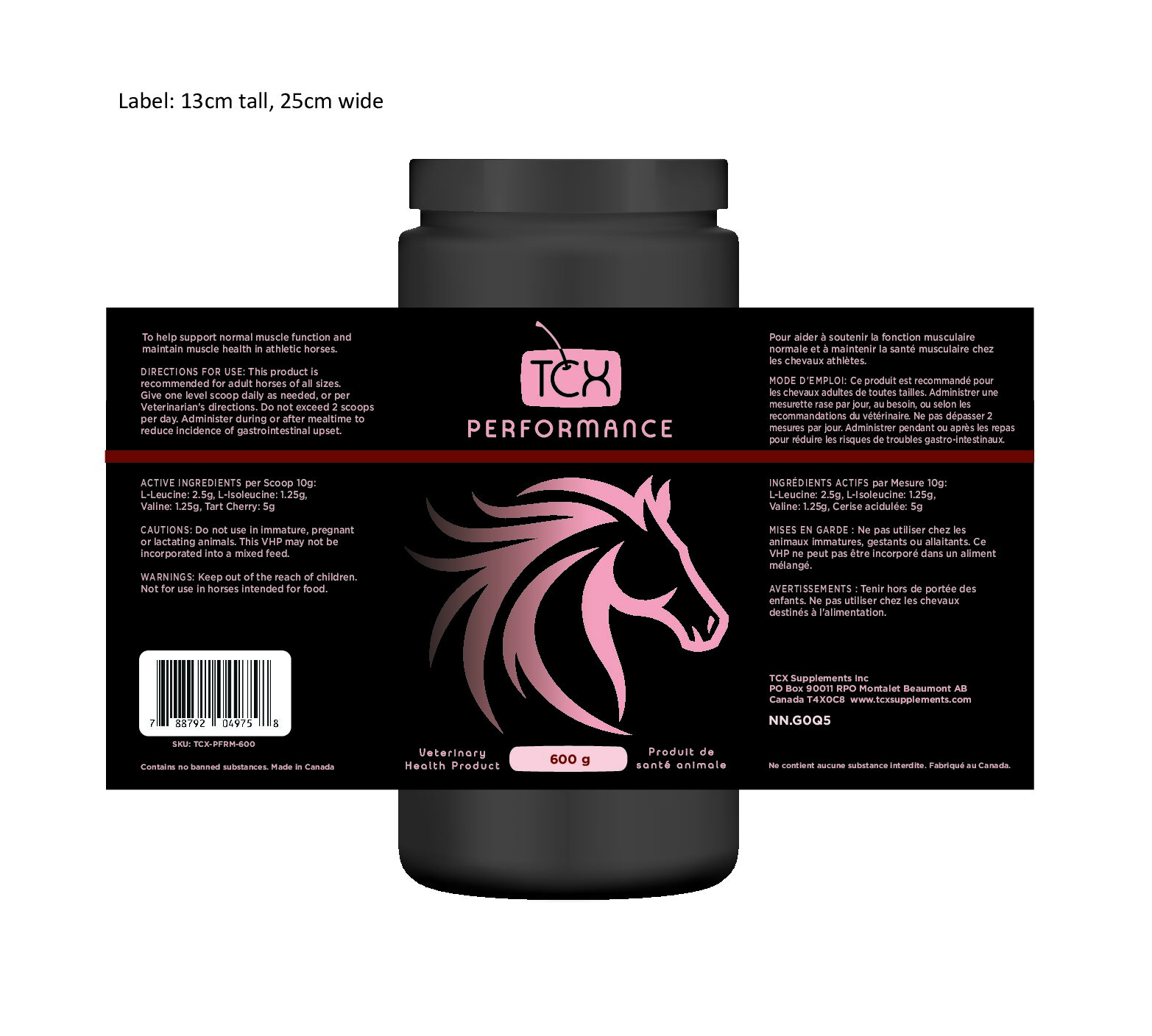 TCX Performance is a scientifically formulated, concentrated blend of Tart Cherry Extract Powder and Branch Chain Amino Acids proven to reduce muscle and joint inflammation, reduce recovery time and decrease muscle enzyme counts. It can help with muscle and back pain, maintain a healthy ‘topline’, and return horses to work quicker by reducing muscle recovery time. TCX Performance keeps equine athletes enthusiastic and willing in their training. Start your horse on TCX Performance today to help them reach their athletic potential!